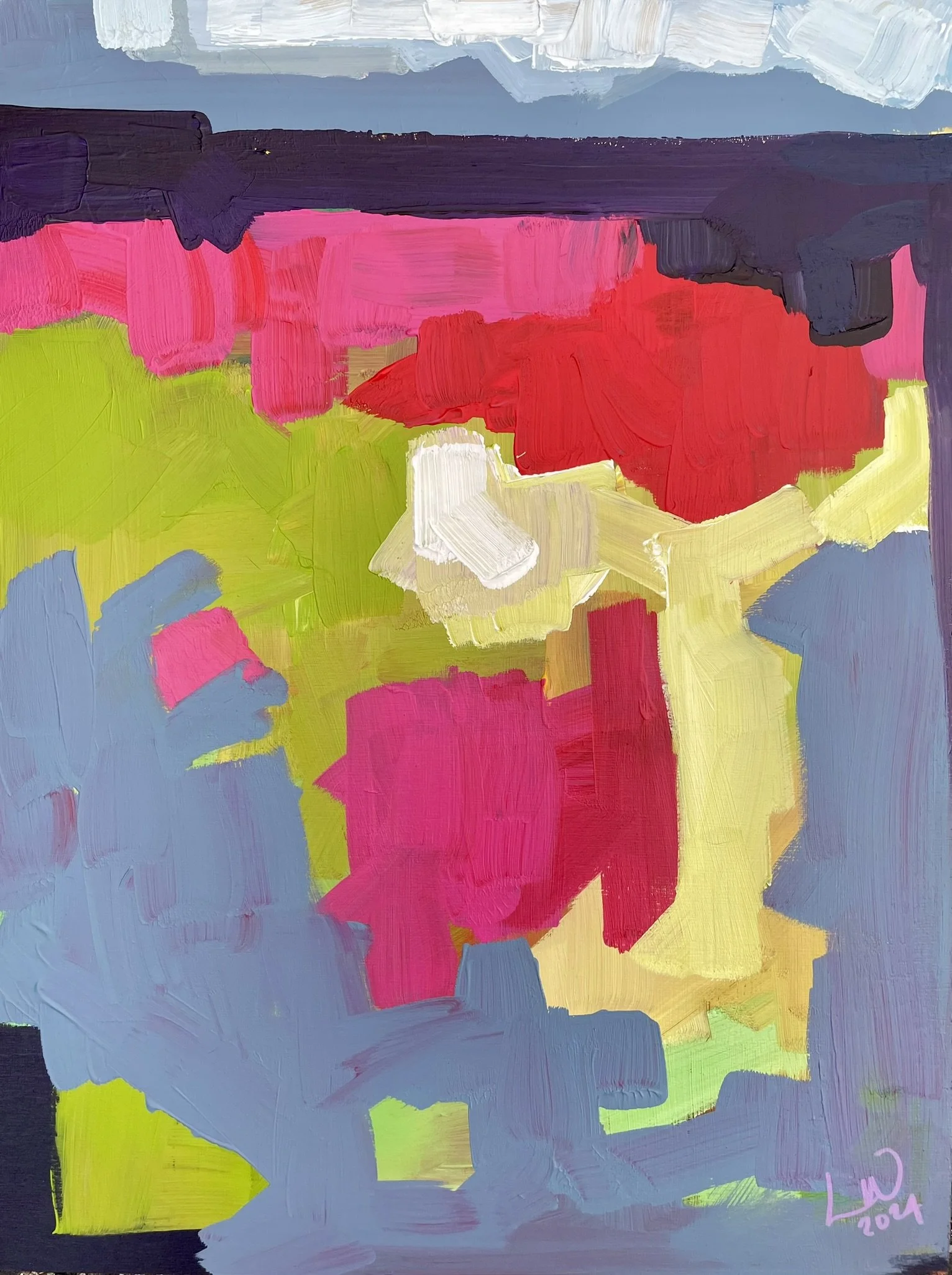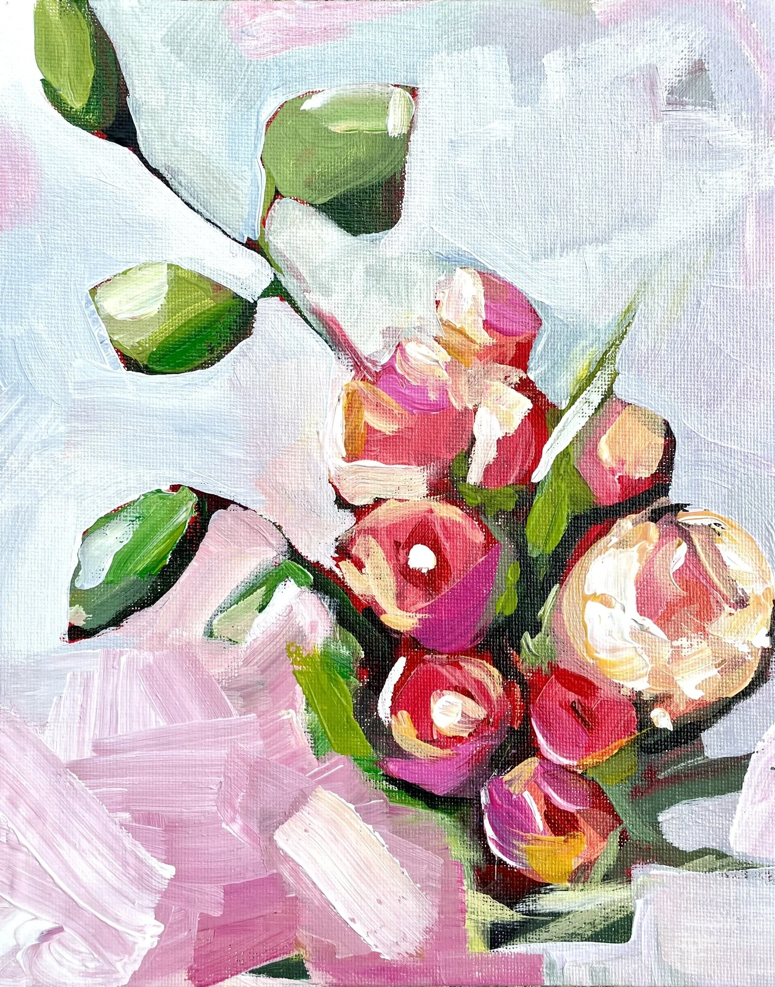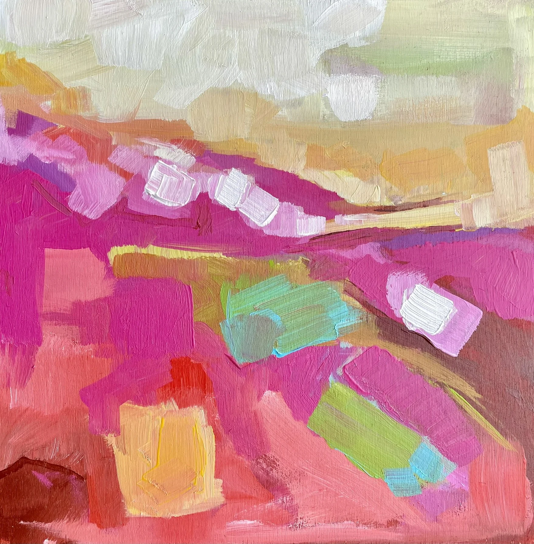 Raspberry Rose Field (Available) | Acrylic on Wood Panel | $120.00